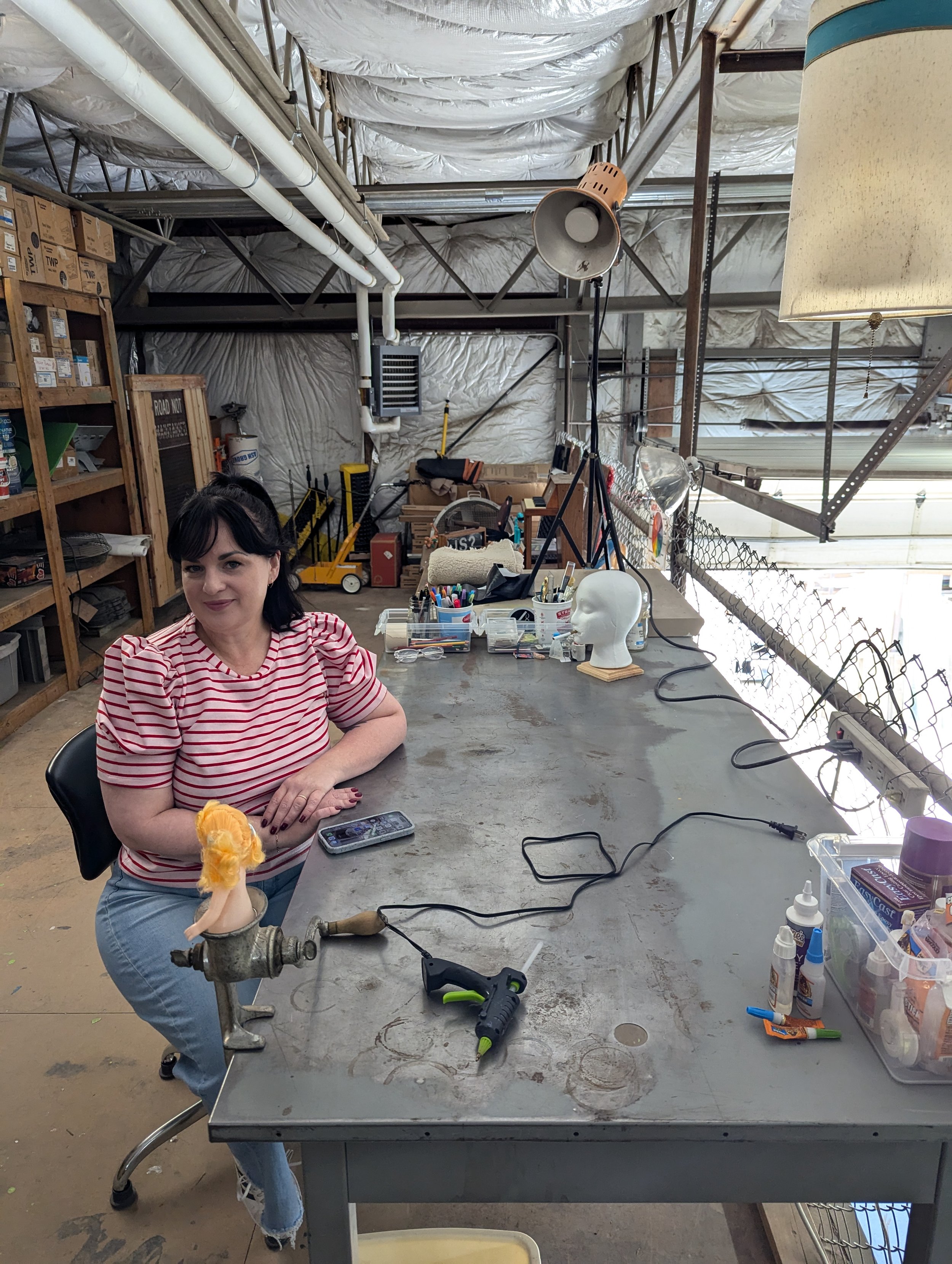 Spring 2025 Artist-in-Residence, Becky Roberts armed with a glue gun!