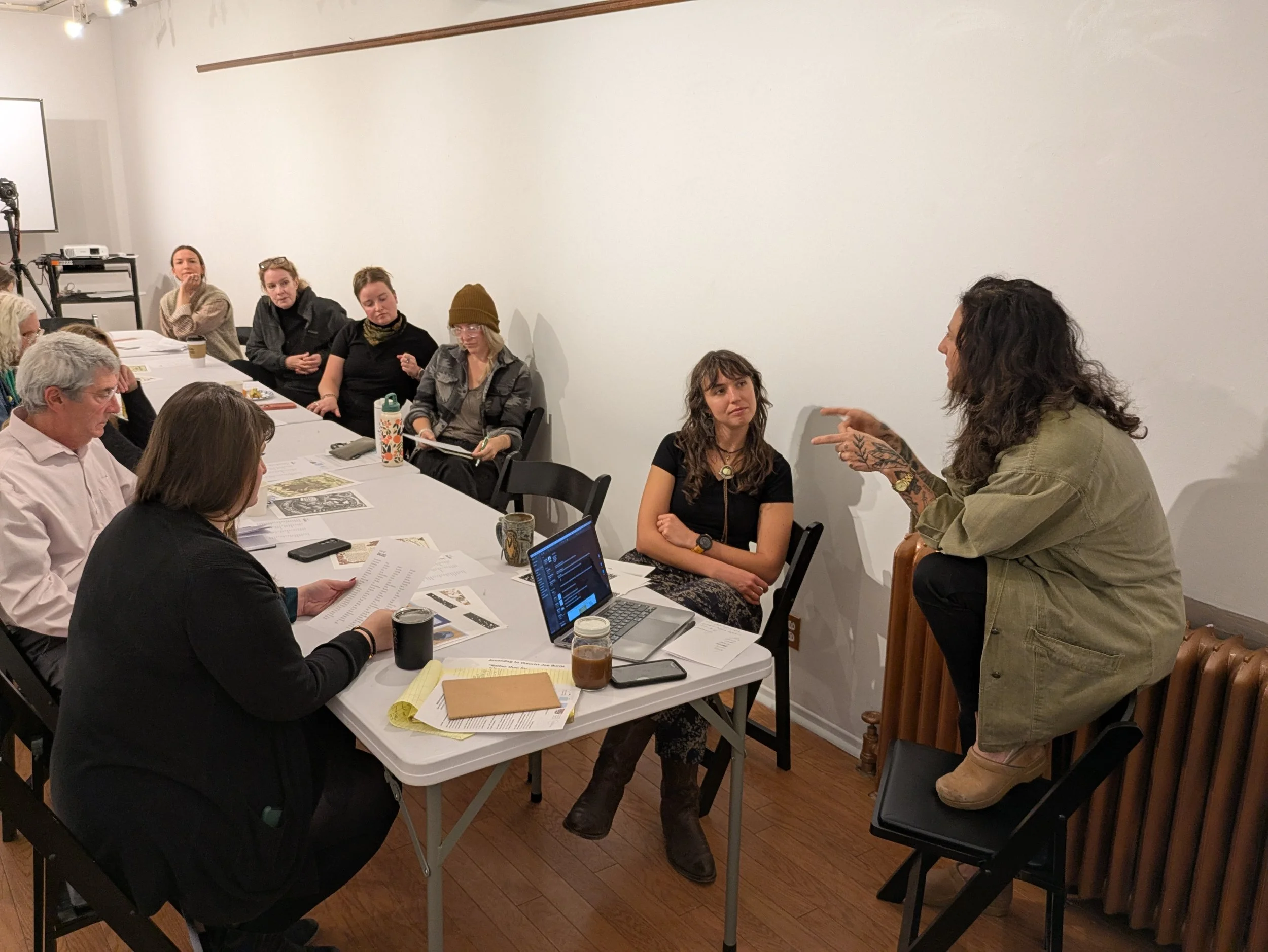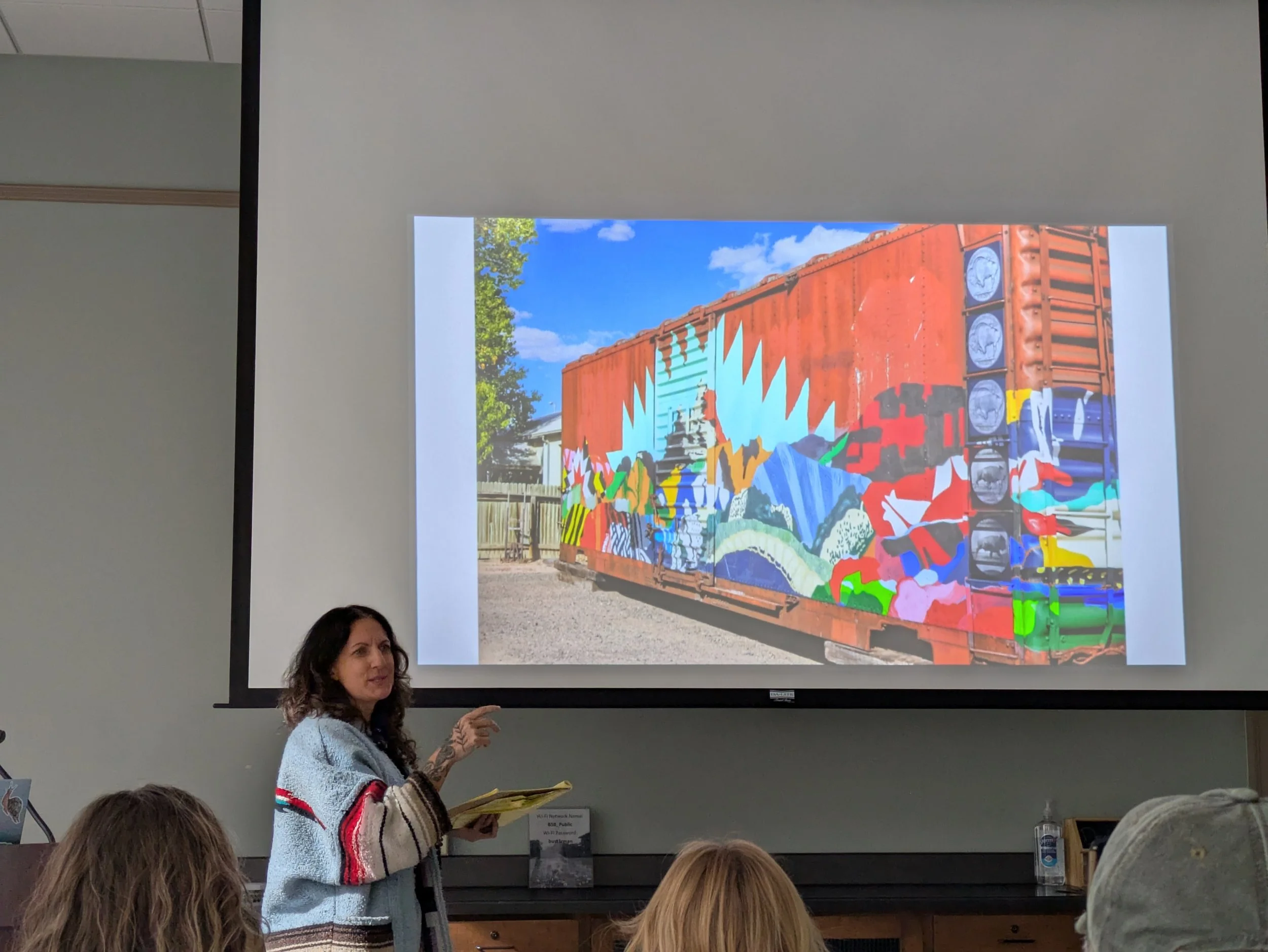 Aubrey presenting for the Open AIR Butte arts conference, held at the Clark Chateau.