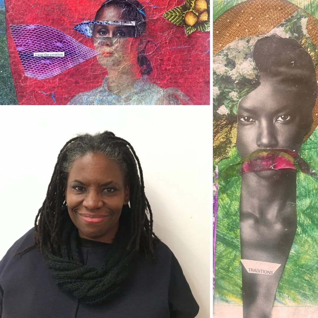 Born of the frustration with slow pace of societal progress, Beth Godley uses collage and paint to express her affective and emotional situation. Through her work she explores women’s lives, abstraction, and the environment. She is inspired by ideas, coffee, bright skies, and recycling. The use of craft techniques and found images can be seen in her work. She maintains separate a practice of glass. She lives and works in Brooklyn, New York.