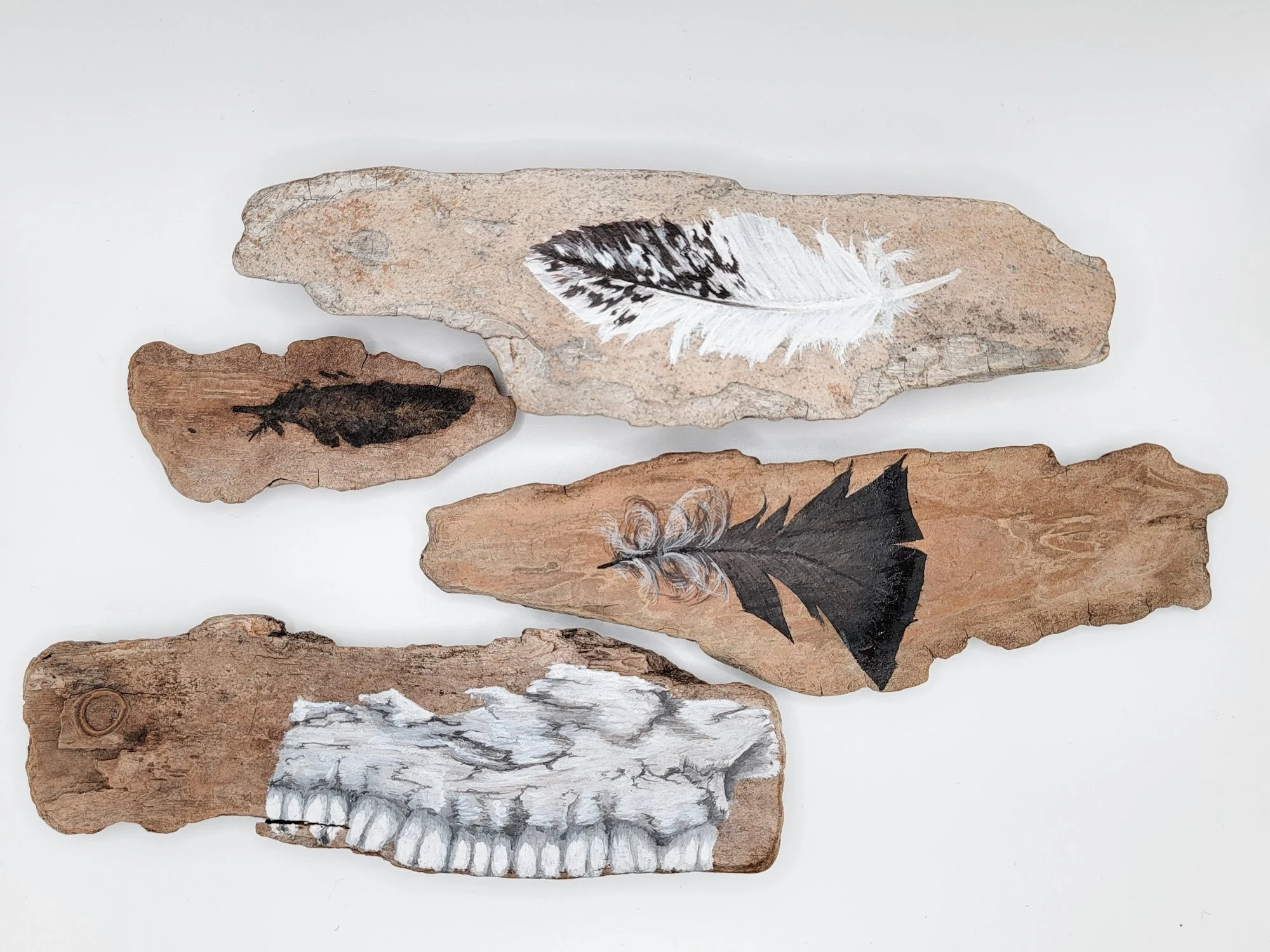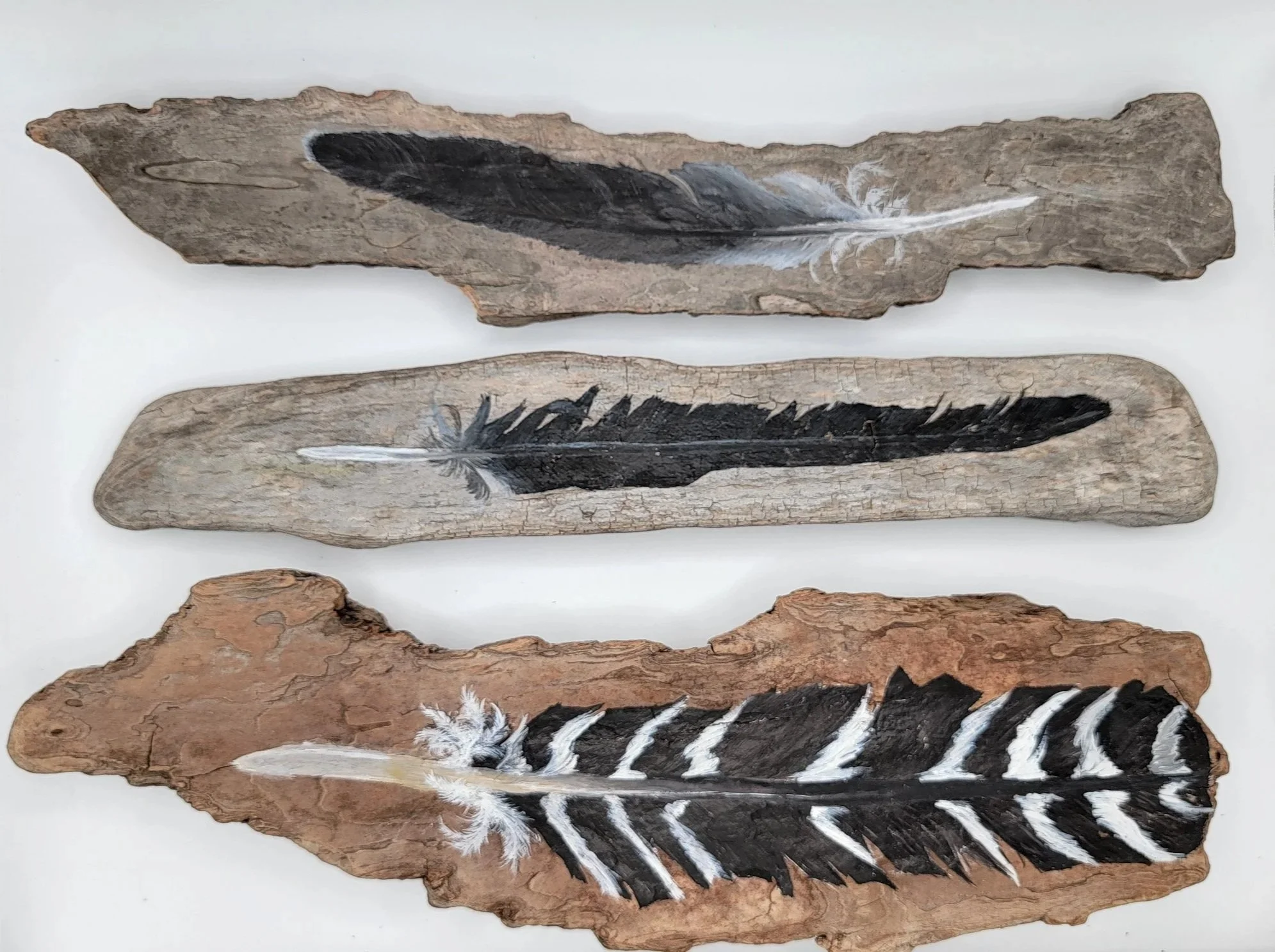 Gouache on pine bark